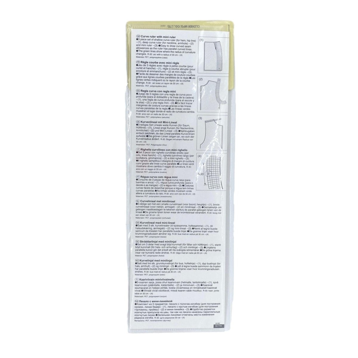 - One deep curve ruler for necklines and armholes