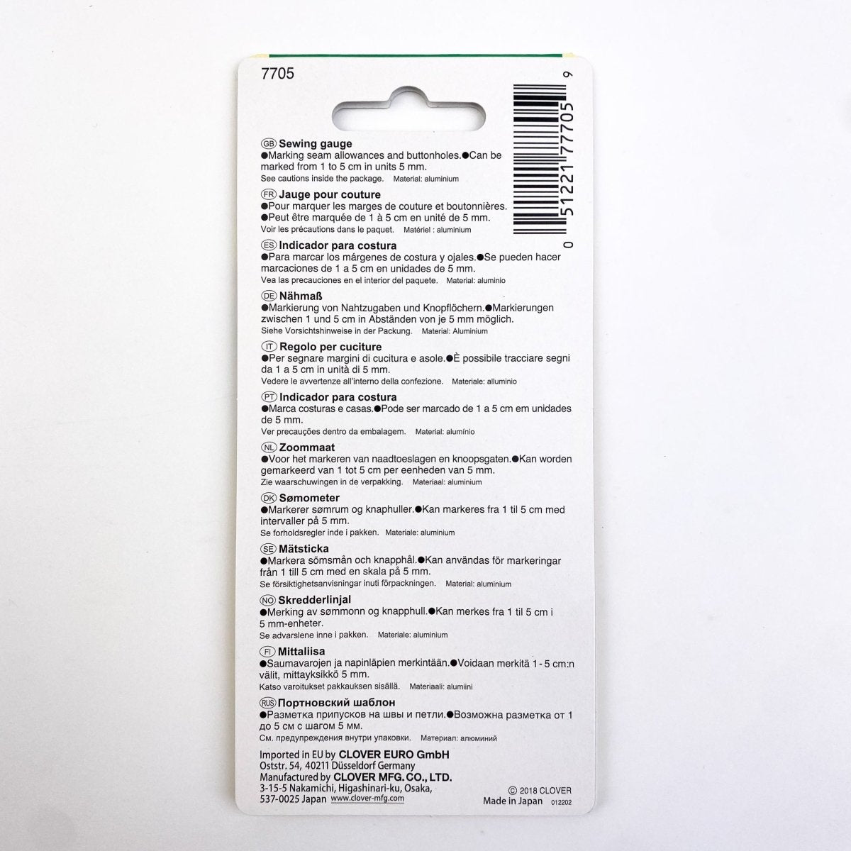 Used for measuring and marking seam allowances and buttonholes. Can be marked from 1 to 5cm in units 5mm.