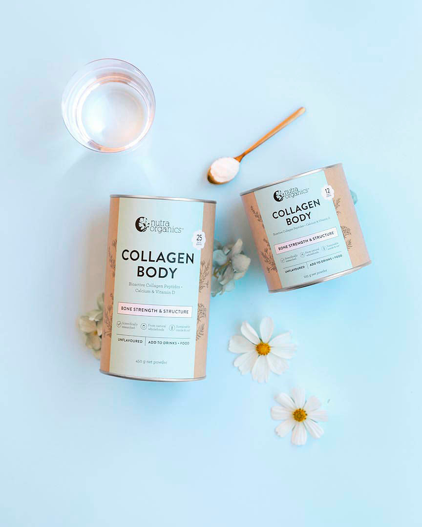 Energy Protein, total - Gluten Fat, total - Saturated Carbohydrate - Sugars Dietary fibre Sodium Calcium Vitamin D Collagen peptides |
