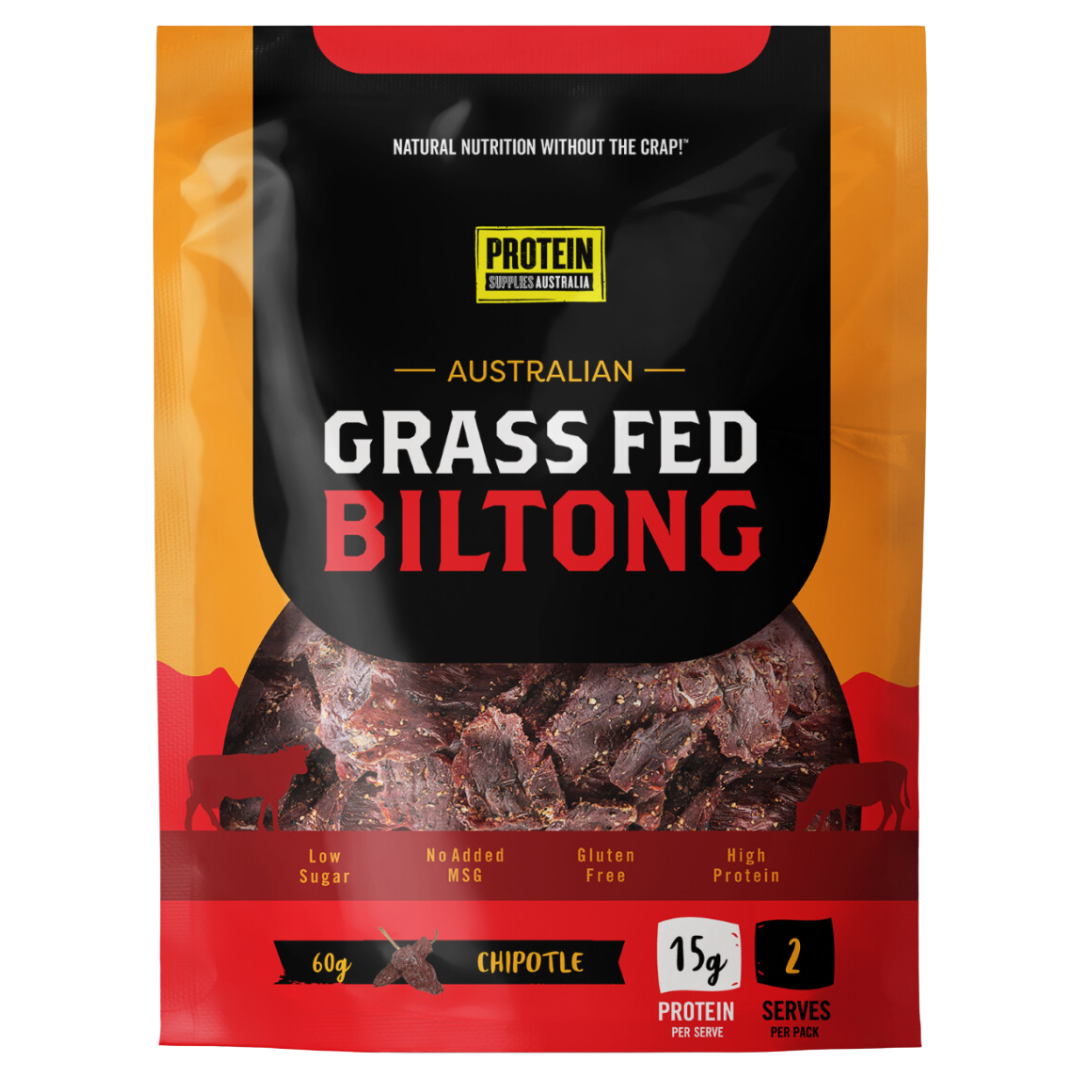 Choose a wholesome lifestyle with Protein Supplies Australia. Embrace our Beef Biltong Chipotle, the ultimate snack for the health-conscious individual eager to feed their body the finest.
