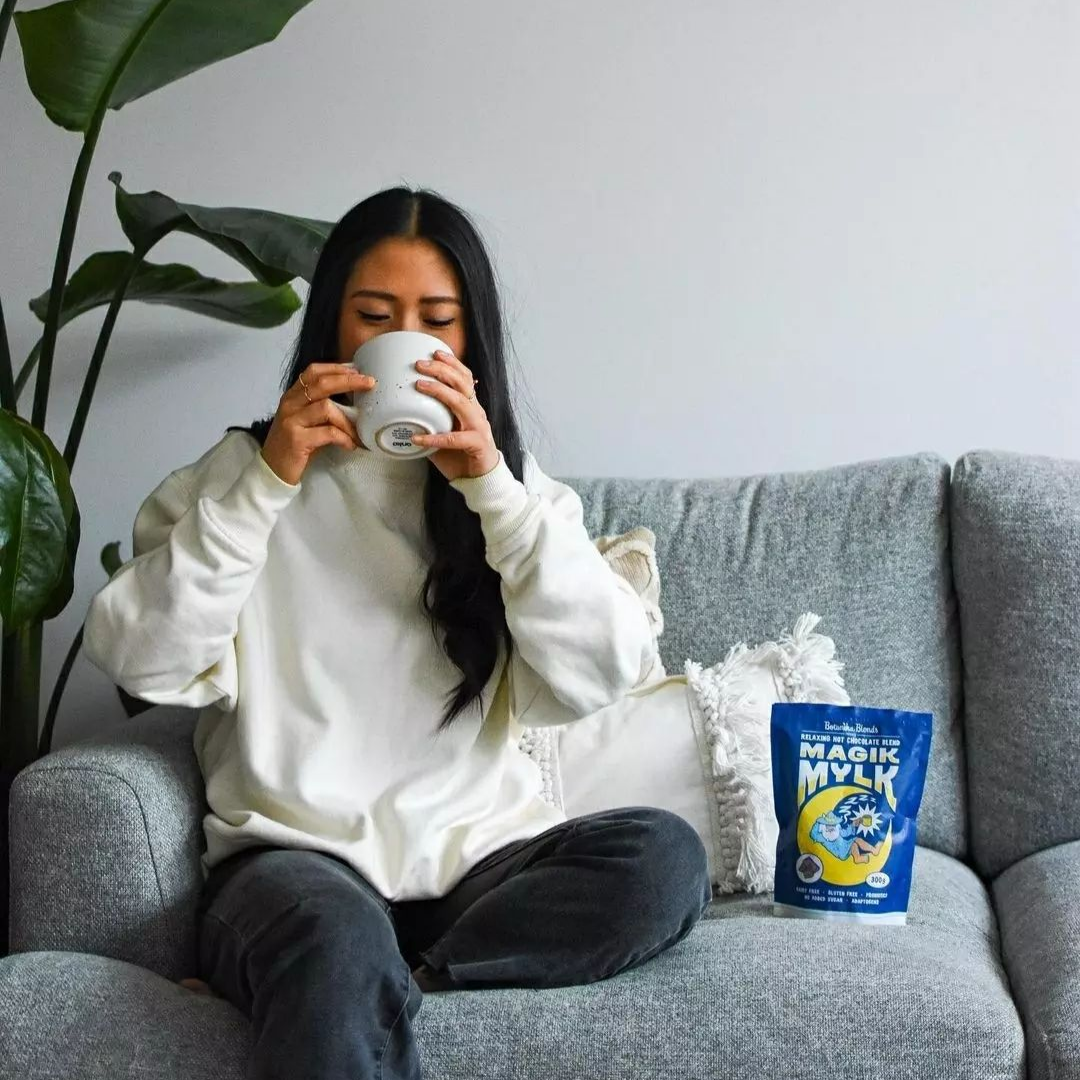 Our Magik Mylk is the drink of your dreams! Transcend into bliss by adding hot water, finding a cozy spot and sipping to sleep 🪄😴 Using adaptogenics, botanicals, organic cacao and probiotics to soothe your soul 🥰