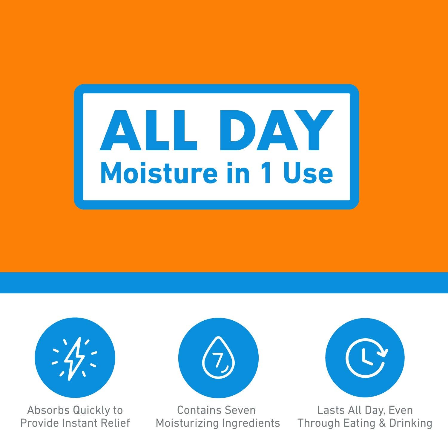 - Creates a multi-layer flexible barrier that moves with your lips and provides all day moisture in one use