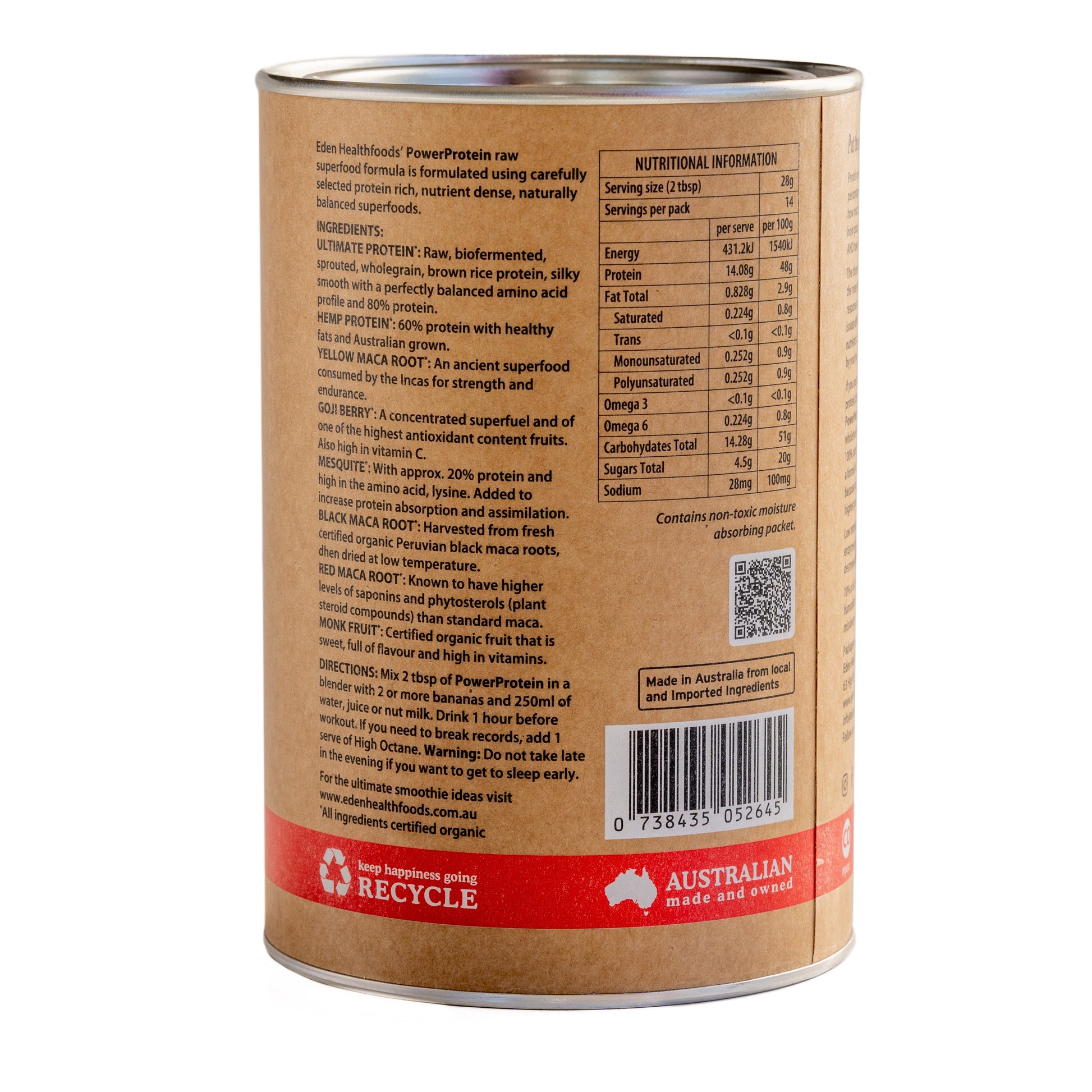 Eden Healthfoods Power Protein is a balanced blend of 100% organic raw and vegan whole food superfoods, using carefully selected protein rich, nutrient dense and naturally balanced superfoods, to create a completely natural energy supplement.