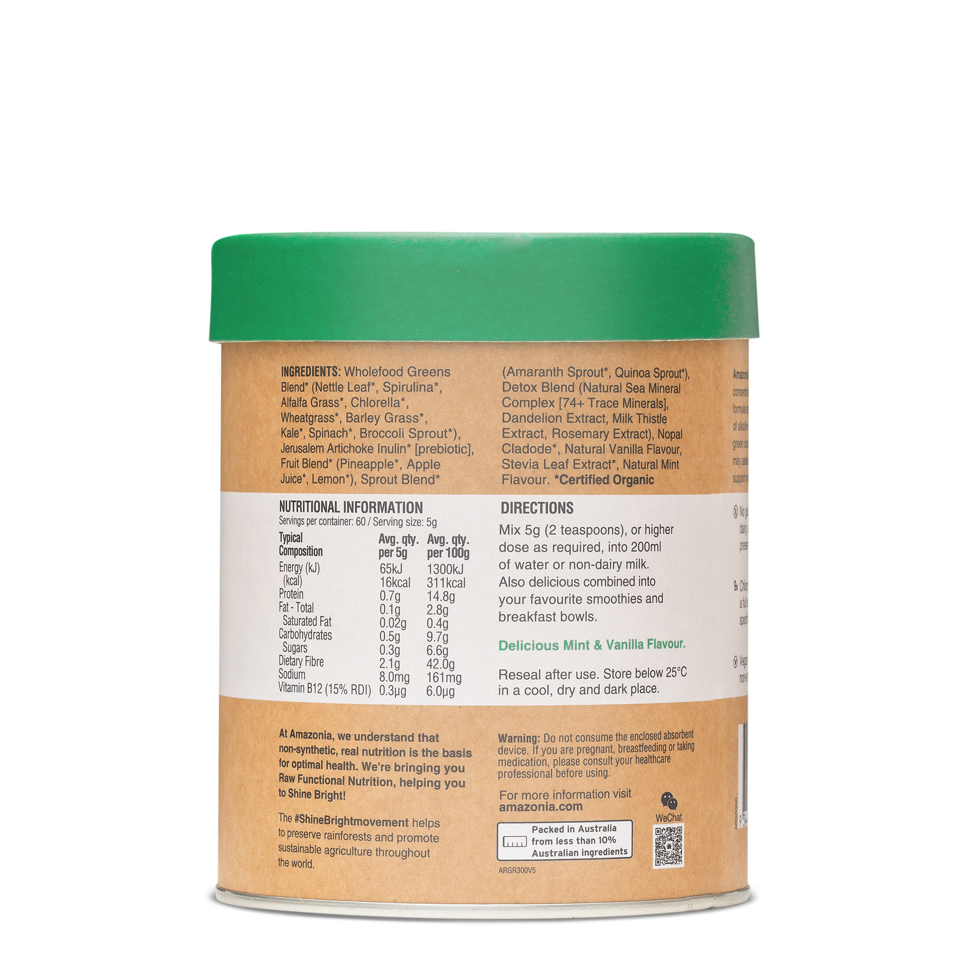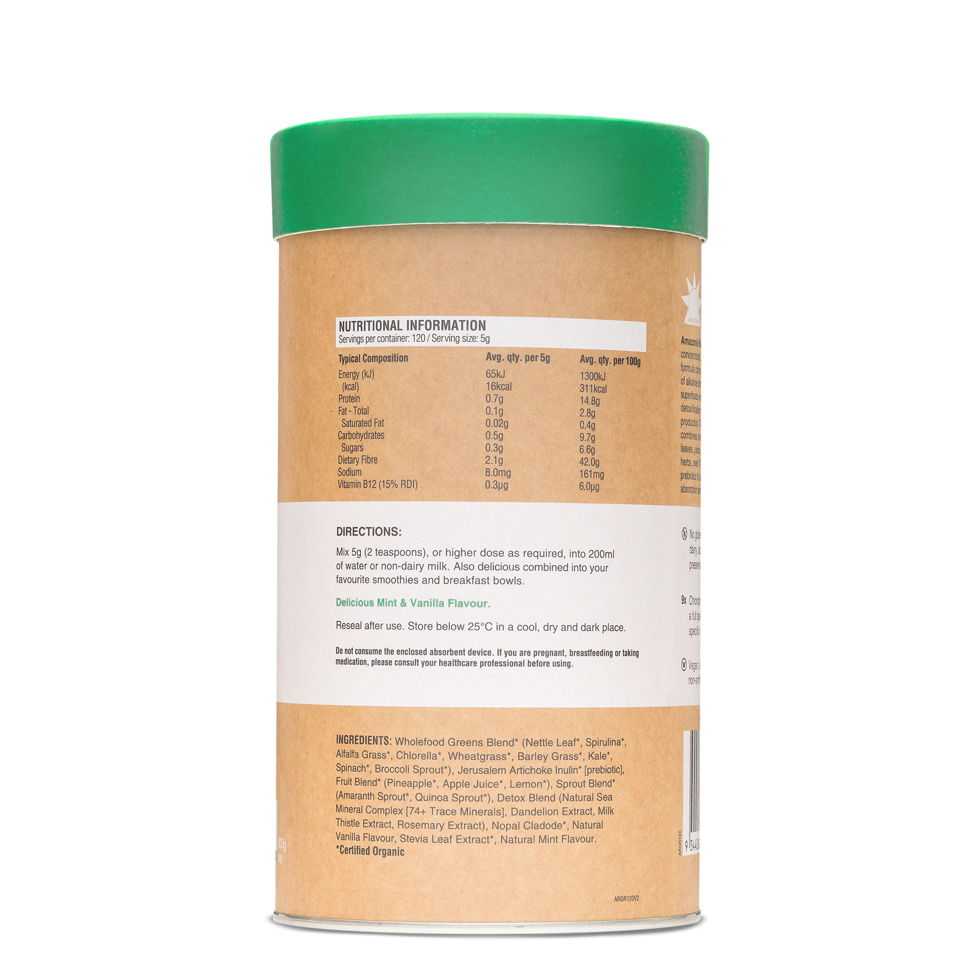 This delicious Mint & Vanilla blend is formulated to support healthy digestion and may assist the body’s natural detoxification processes.