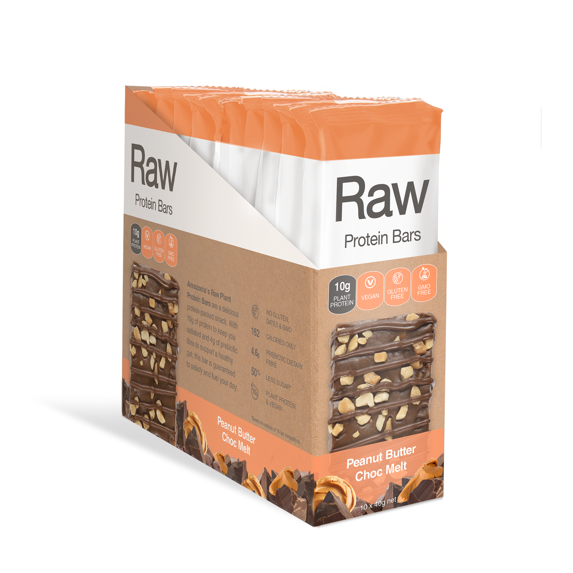 Raw Plant Protein Bars Peanut Butter Choc Melt - 10 Pack