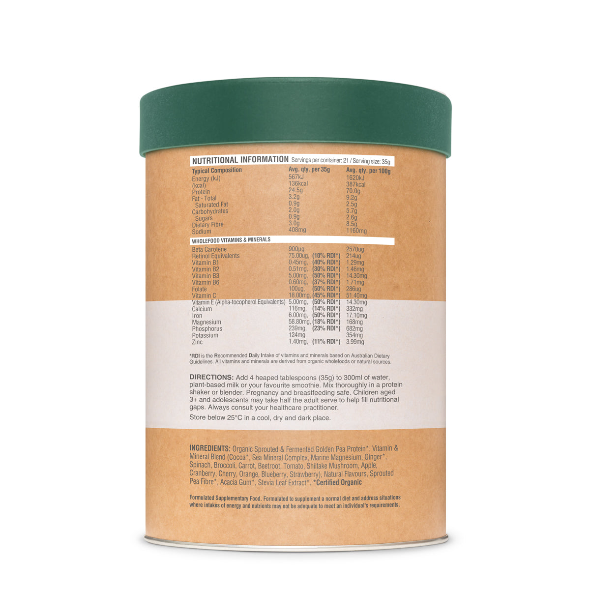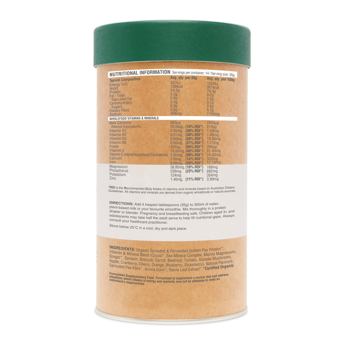 A convenient, all-in-one blend with 24g plant protein and 14 wholefood vitamins and minerals – made from organic, real food ingredients.