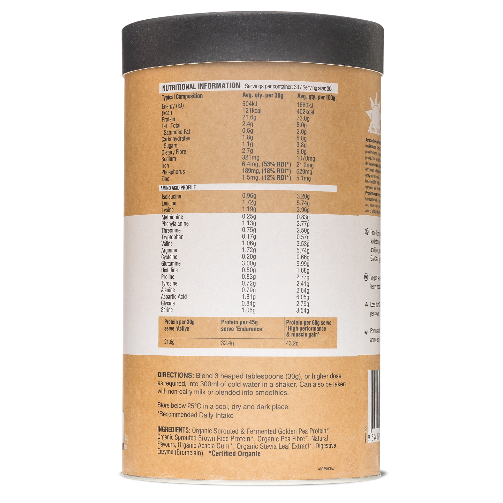 Packed with a complete amino acid profile, plus essential minerals like Zinc, Phosphorus, and up to 99% of your RDI of Iron, this protein blend features certified organic sprouted and fermented plant protein for optimal digestion and absorption. Now Certified FODMAP, it’s the ultimate choice for those seeking a clean, gentle protein.