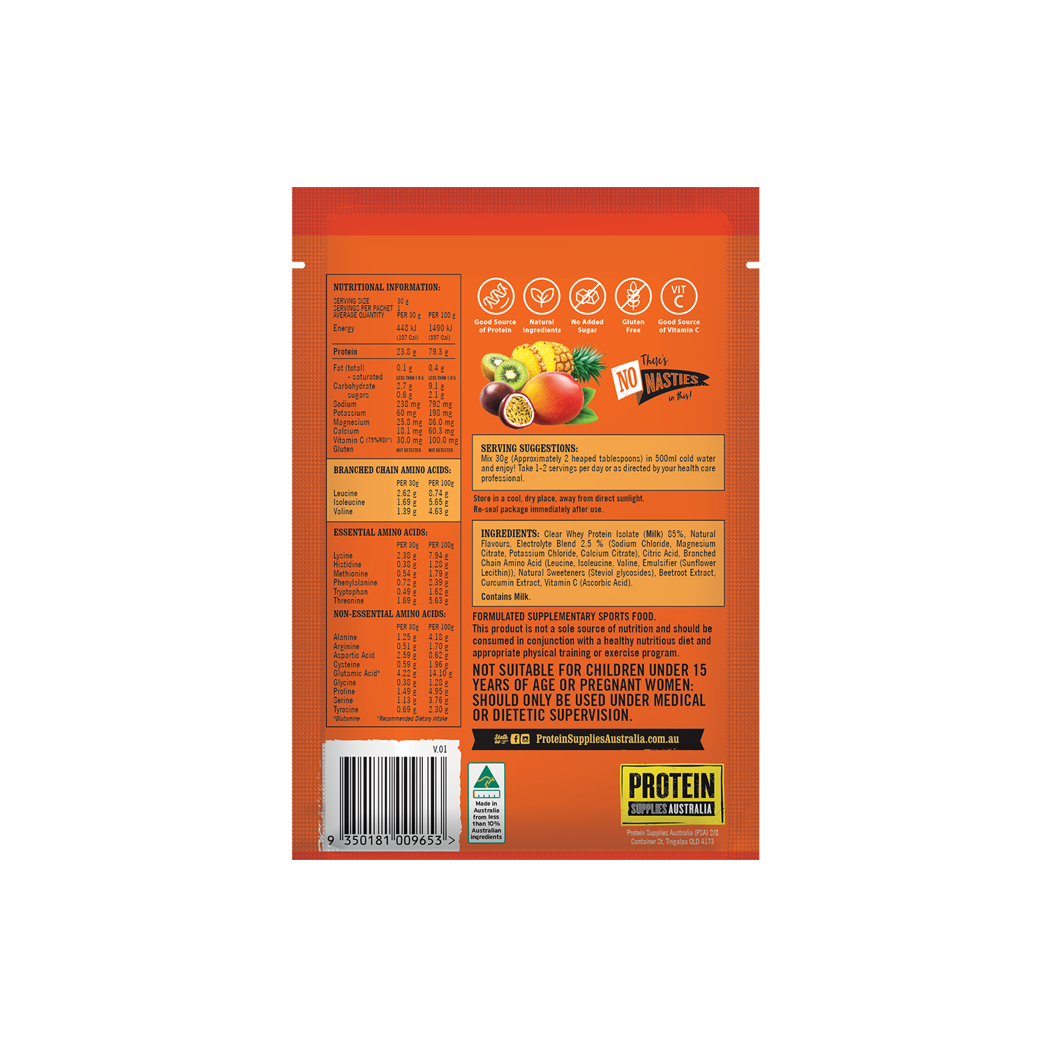 It's the refreshing experience of drinking water, enhanced with the tropical taste. Protein Water Tropical Punch offers a great alternative to the creamy texture of traditional protein shakes, making it the perfect choice for those who desire a light, fruit-infused drink. Adjust the flavor and sweetness to your liking by simply altering the amount of water you mix it with, and enjoy a personalised hydration experience.