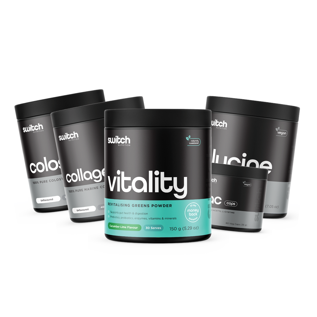 Colostrum, Marine Collagen, Glycine, NAC, and Vitality Switch