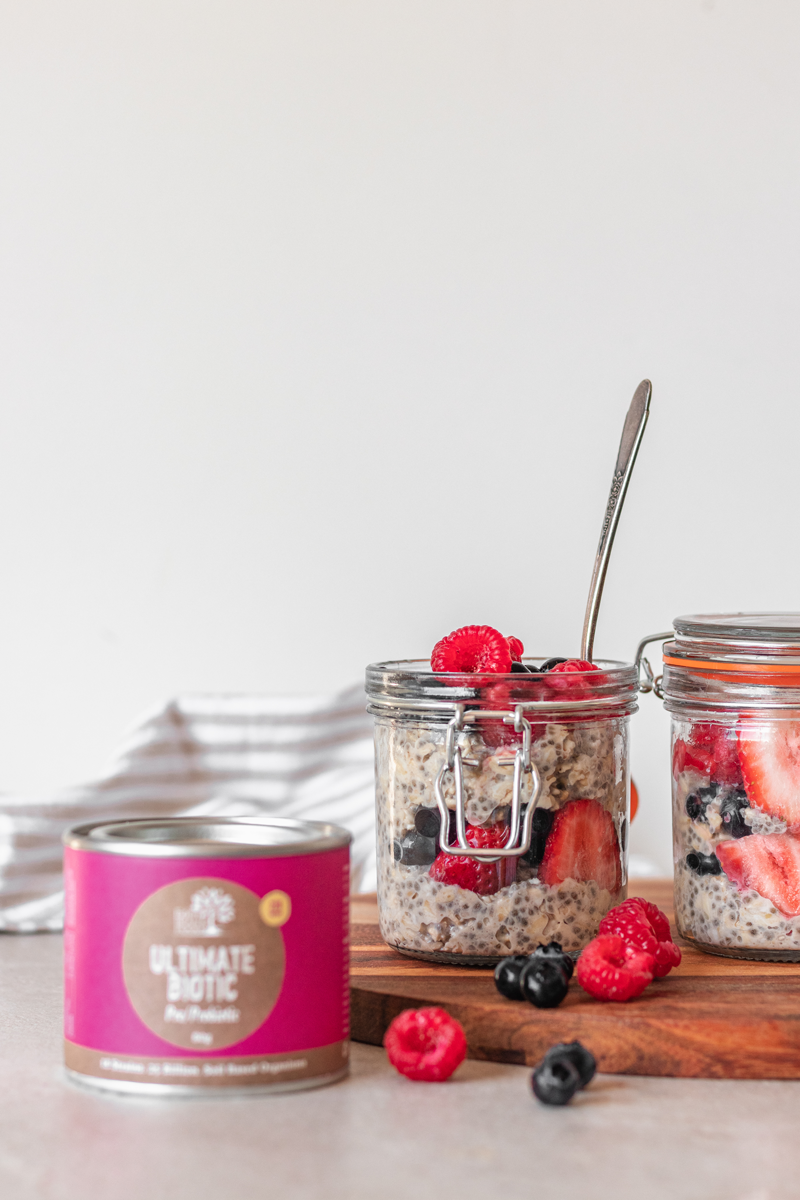 - 5 unique prebiotic food sources, protect and feed live bacteria